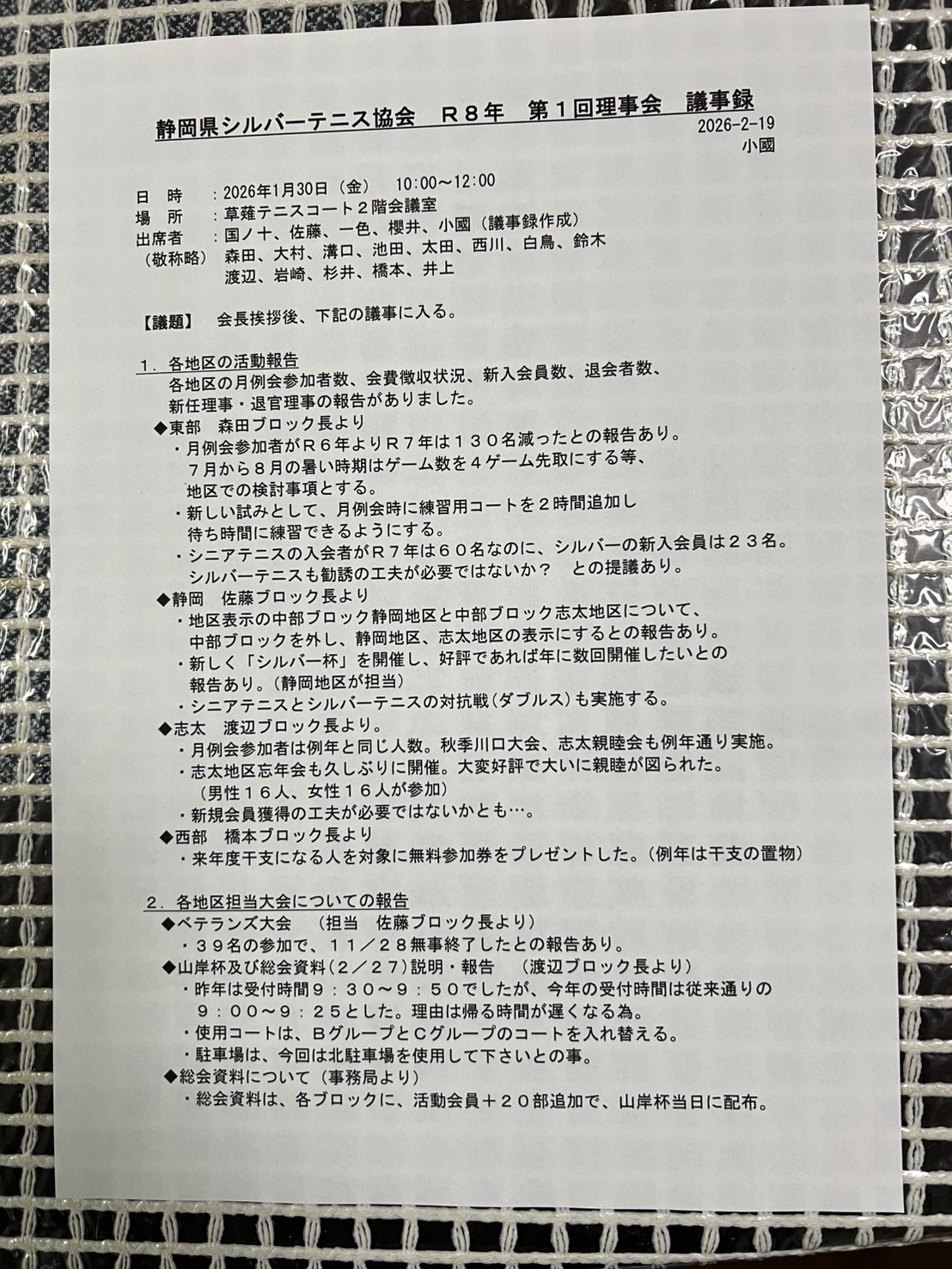 2025/2/27 静岡県シルバーテニス協会 総会 ⇒ 組織・役員