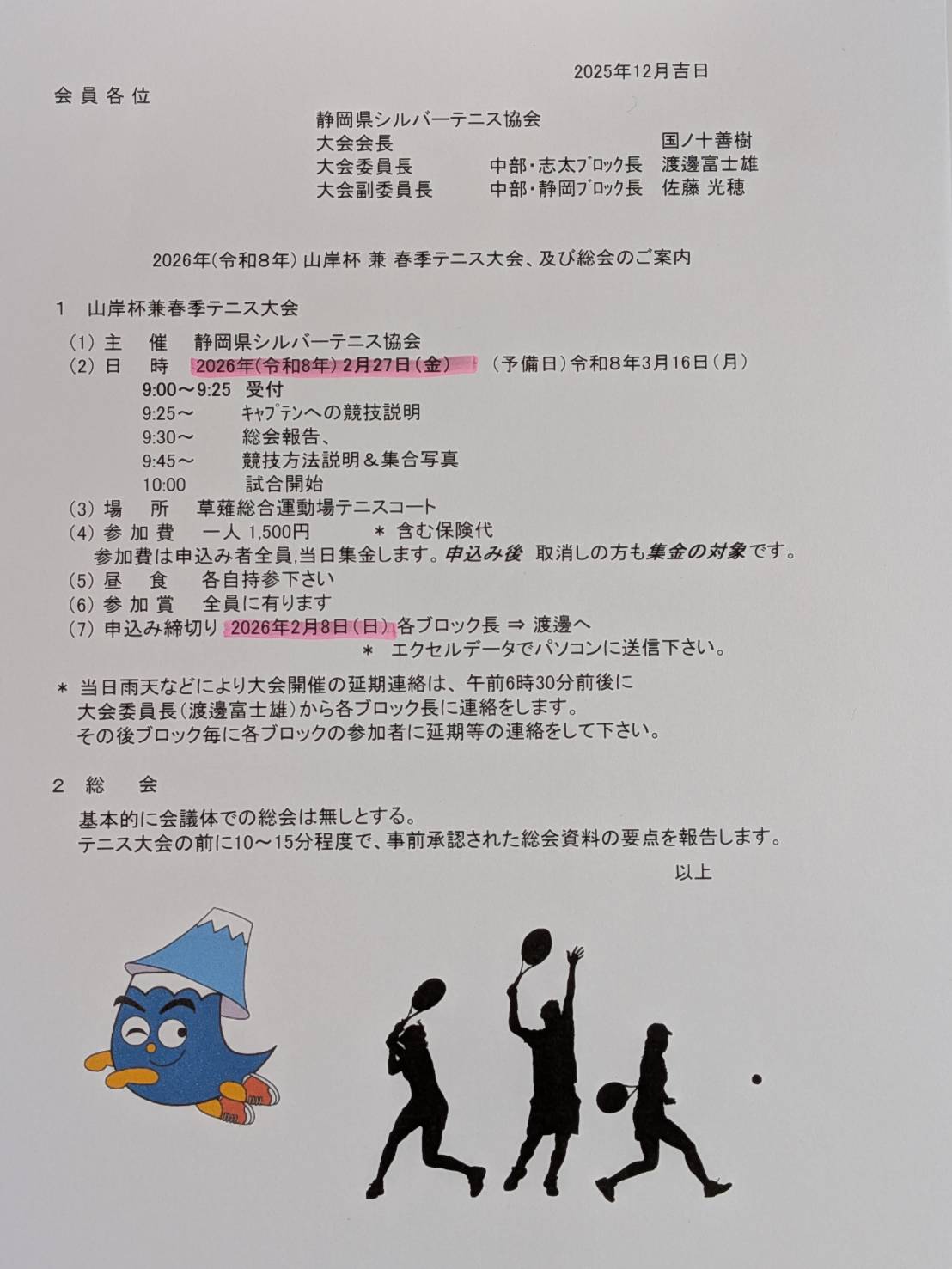 2025/12/25  山岸杯 兼 春季大会、総会(2026/2/27) ⇒ 案内